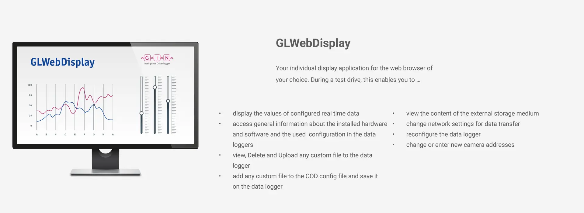 • Implementation of custom web pages on the data logger (GLWebDisplay)