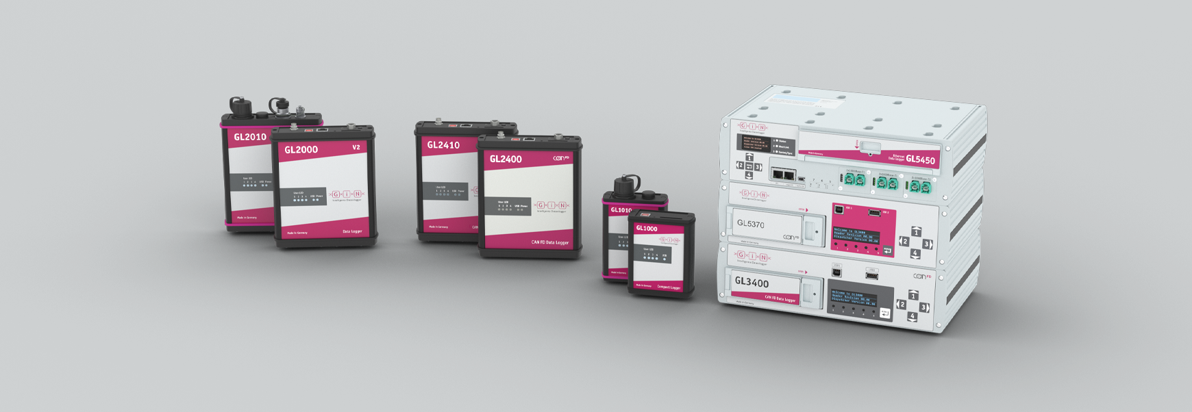 G.i.N. Intelligente Datenlogger werden als Standalone-Werkzeug zum Aufzeichnen der Datenkommunikation über CAN, CAN FD, CAN FD SIC, LIN, FlexRay, automotive Ethernet 100-/1000Base-T1, USB, RS-232 und K-Line eingesetzt. Zeitsynchron zu diesen Daten können zusätzliche GPS-Daten sowie Digital- und Analoggrößen erfasst und ausgewertet werden.