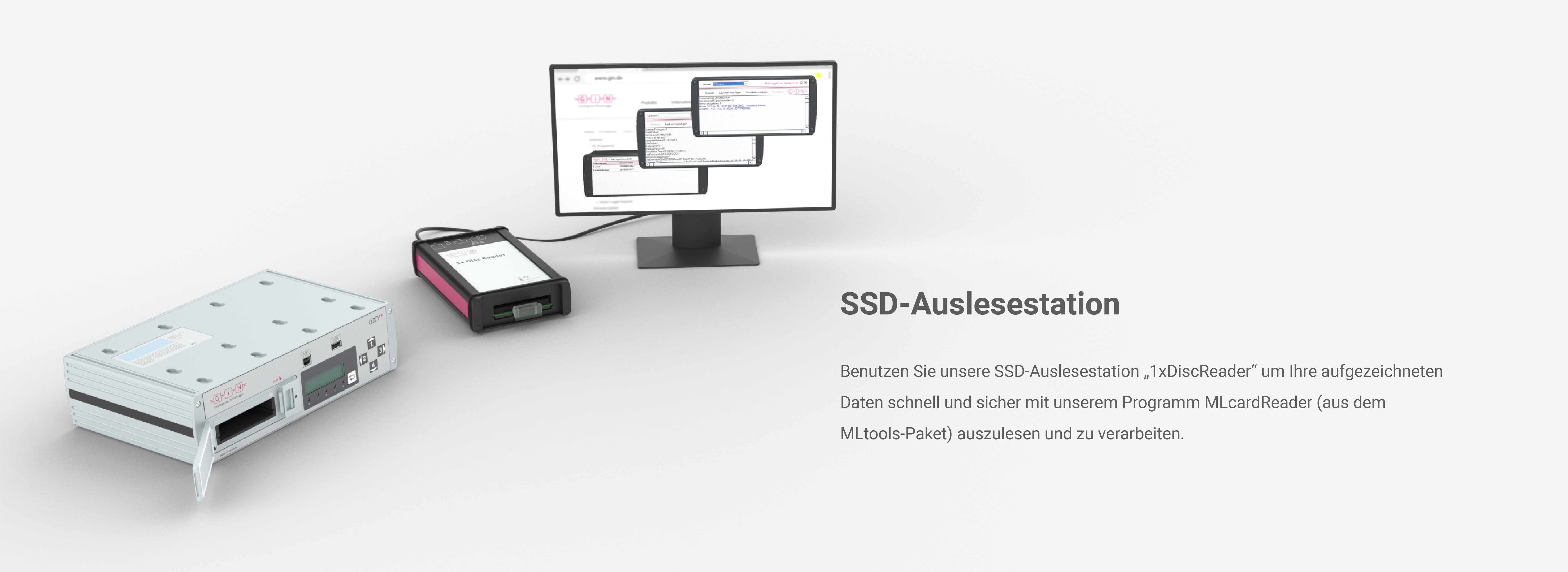 Der GL5450 wird über den GL5350/GL5370 und GL3400 gesteuert und konfiguriert. Die Zeitsynchronisation der Daten wird über die separate SYNC-Leitung gewährleistet.